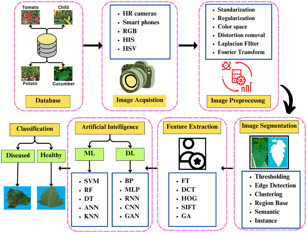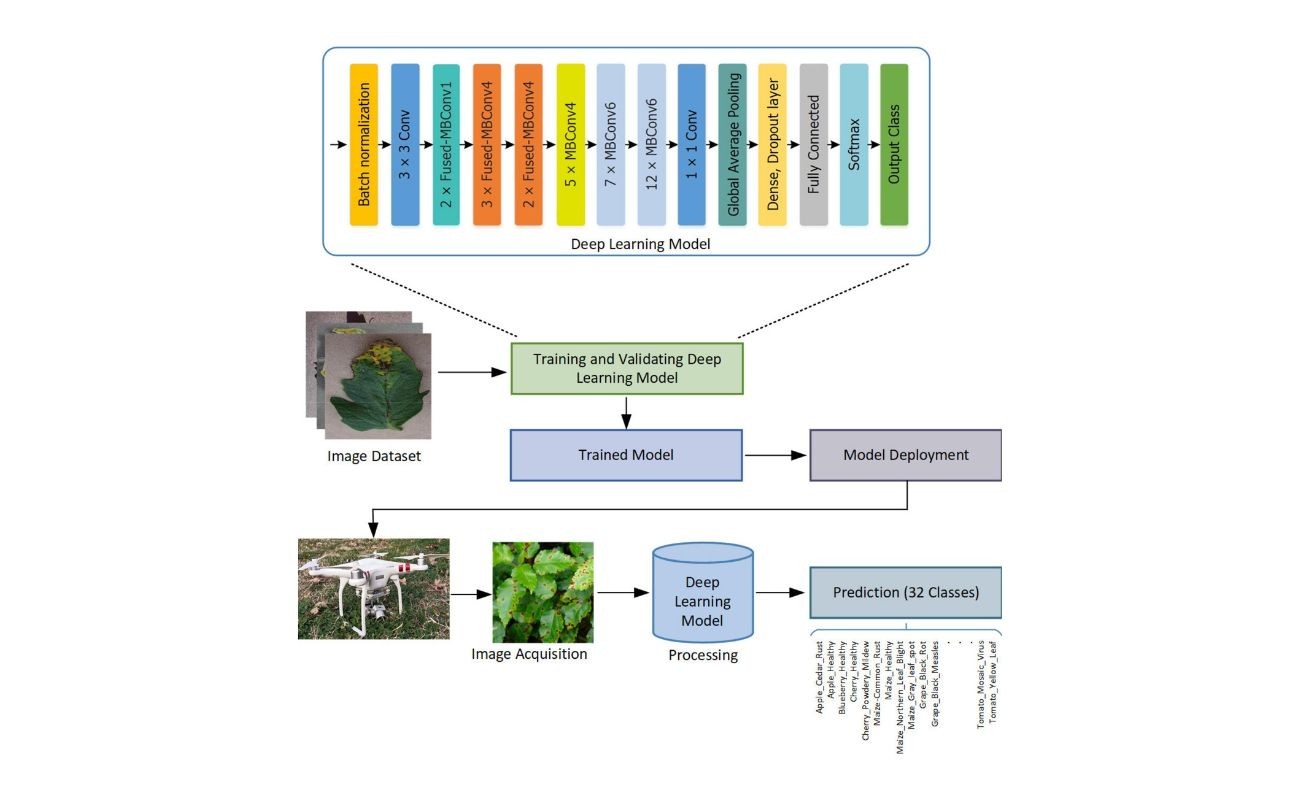 AI-Based Crop Disease Detector is a deep learning solution that leverages Convolutional Neural Networks (CNNs) to automatically identify and classify crop diseases from leaf images. The dataset was cleaned, preprocessed, and augmented to improve robustness and accuracy. Multiple experiments were conducted to optimize model performance and minimize false predictions. The final model was integrated into a user-friendly web application enabling real-time disease diagnosis.